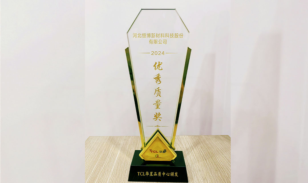 河北恒博新材料科技股份有限公司產品銦錫氧化物材料(ITO靶材),榮獲TCL華星光電品質中心頒發的“優秀質量獎”。